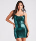 A sparkly sequin mini dress that spreads your sparkle on a girl's night out! The short dress features a sleeveless cowl neckline, spaghetti straps that create the tie-back design, and a bodycon silhouette. The lined knit fabric features all-over sequin embroidery. Complete the look with hoop earrings.
