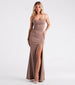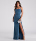 Your divine beauty will stun in the Stacie formal dress to make your entrance as a bridesmaid or arrival to a dinner banquet! She features a sleek and sleeveless cowl neckline, spaghetti straps, a high-waist seam, and a skin-flaunting high-cut front slit along her flowy, a-line silhouette and floor-length hem. The formal dress is composed of a slinky knit fabric with a sewn-in knit lining and plenty of stretch. Style with rhinestone platform heels and a clutch to complete your dressy look!