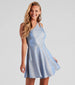 Radiate sparkle with every step on the Stacie glitter party dress made to shine all night! She features an eye-catching, cutout one-shoulder neckline with dual adjustable straps, princess seams along the bodice, a high waist seam, hidden side pockets to keep your hands warm, and a skater-style short-length skirt. The formal dress is composed of a metallic sherri glitter woven fabric with partial lining and no stretch. Complete your dressy look in stiletto mules and a clutch.