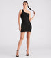 Start the party off right in this head-turning LBD! It features a sleeveless one-shoulder neckline, a wide shoulder strap that leads to the strappy back design, a form-hugging fit, a side slit accent, and a mini-length hem on stretchy crepe fabric. Style this mini dress with statement rhinestone earrings and heels for a complete look!