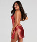 Make it a sultry night out in this stunning on-trend halter dress! It features a sleeveless draped cowl neckline, adjustable chain-link halter straps with a lobster clasp closure, an alluring open back, a draped design at the lower back, chic high side slits, and a mini-length silhouette. The dress is composed of an unlined chainmail metal material that offers a form-hugging fit. Complete the look with clear heels.