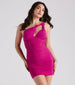 Level up your sultry status in this alluring mesh mini dress! It features a one-shoulder neckline with a tank strap with knotted details, a bold front cutout above the bust, a wired bust to provide structure, and a ruched corset-designed bodice with flexible boning. The high waist seam leads to a ruched skirt with a mini-length hem and a bodycon silhouette that will hug your curves. The lined mesh fabric offers a moderate stretch. Complete your night-out look with platform heels.