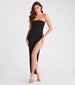 If sandy beaches are what you seek this maxi dress is ready for fun under the sun! It features a strapless neckline, a side O-ring metal insert atop the sexy high slit, and a flowy long hem on slinky knit fabric. Complete the look in strappy sandals and sunglasses!