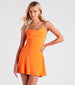 This gorgeous mini dress was made for sunset dates! It features a sleeveless cowl neckline, spaghetti straps, an open back with a cross-back strap design and a low back draped accent, and a mini-length hem with an A-line silhouette. Style this short dress with a dainty necklace and espadrille wedges.