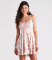 Embrace your cuteness looking so sweet in this floral short dress - a perfect pick for family gatherings or parties! It features a sleeveless scoop neck, adjustable spaghetti straps, a trendy tie-back, a ruched bust, and a ruffle-layered short-length hem. Complete the look in bow heels.