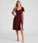 Your sweet style personality goes in harmony with this chiffon midi dress perfect for any upcoming weddings and parties! The knee-length dress features short puff sleeves, a sweetheart neckline, princess seams, and a front flirty slit along the A-line silhouette. Pair with a chic ring set and heels.