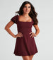 Get swept off your feet looking so sweet in this crepe skater dress featuring adorable short puff sleeves, a square neckline, a high waist seam, and a short length hem with a fit and flare silhouette. The crepe fabric offers a moderate stretch. Complete the look in a trendy ring set.