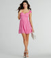 Swing into the season in this charming eyelet skater dress perfect for birthday brunch to day dates! The cap sleeves and sweetheart neckline add a touch of romance, while the padded bra cups provide support. The tie-back design and fitted bodice add a playful twist to the skater silhouette and flirty ruffled short-length hem. Complete the look in strappy platform sandals and a purse!
