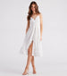 This eyelet lace midi dress is sure to get your crush's attention! It features a sleeveless V-neckline, adjustable spaghetti straps, button front accents, a flattering A-line silhouette, and a front slit along the hem. Complete the look in clear block heels for a daytime soiree!