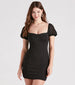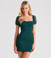 Your honey will be taken by the view of you in this sassy crepe dress on date nights and cocktail soirees! It features adorable chiffon puff short sleeves, a sweetheart neckline, a structured bust, and a bodycon mini-length hem. Complete the look with an glitter box clutch and heels.