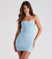 Their text can wait. You'll be too busy catching all the attention in this casual mini dress featuring a sleeveless square neck, bungee spaghetti straps, a strappy open-back, and a bodycon silhouette. The dress is composed of a texture knit fabric with a stretchy lining. Complete the look in a crop denim jacket.