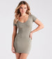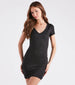 This casual knit mini dress is the perfect basic for creating cute everyday 'fits! It features a V-neckline, short fitted sleeves, a mini-length hem, and a form-hugging fit. The cotton-blend fabric offers a moderate stretch. Style with hoop earrings and strappy mules.