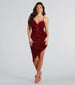 Imagine the way you'll sparkle in this sequin velvet midi dress at parties or holiday banquets! The midi-length dress features a sexy plunge-wired V-neckline, a padded bust, spaghetti straps that shape the lace-up back, a flattering bodycon silhouette, and an asymmetrical hem. Complete the look with a clutch and heels!