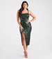 Beautifully designed with sparkly sequins, the Tilda formal midi dress brings shine to award banquets, weddings, and dressy birthdays! She features a sleeveless one-shoulder neckline, and dual adjustable spaghetti straps, a lightly padded bust, a form-hugging silhouette, and a skin-flaunting front slit along the midi-length hem. The formal knee-length midi dress is composed of a sequin-scroll pattern on mesh fabric with a stretchy knit lining. Complete the look in sassy block heels.