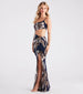 Get ready to escape on a gorgeous getaway in this sultry tropical print maxi dress! It features a sleeveless asymmetric one-shoulder neckline with a spaghetti strap, a bold and alluring asymmetric waist cutout with a trendy O-ring accent, a hip-hugging fit that will hug your natural curves, and a floor-length hem with a thigh-high side slit to showcase some leg. The all-over palm leaf print on the stretchy knit fabric captures those tropical oasis vibes. Style with strappy sandals.