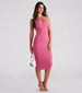 You'll be such a trendy babe in this adorable cutout sweater dress! Featuring a sleeveless high neckline with a racerback design, a front keyhole cutout at the bust, alluring side cutouts at the waist, a midi-length hem, and a curve-hugging silhouette, this dress is a perfect pick for a night out with the girls. Style with platform heels and a chic handbag.