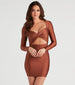 The twist on this mini dress is just right for the club! It features long sleeves, a V-neck, cutout bodice, composed of slinky knit fabric that hugs your curves. Complete the look in lace-up heels.
