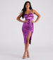 Luminous shine enchants the Twyla formal satin midi dress showcasing sultry detail that won't go unnoticed at banquets or ceremonies! She stuns in a sleeveless sweetheart neckline with a twisted bust, keyhole cutout, adjustable spaghetti straps for a customizable fit, and a front ruched seam leading to the skin-flaunting slit. The formal midi dress is composed of a lined satin fabric that hugs your body like a glove and has a sheen effect. Style with embellished heels to complete the look!