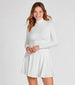 This chic short skater dress will elevate your casual winter looks! It features a mock neckline, long fitted sleeves, a high waist, a short-length hem, and an adorable fit and flare skater silhouette. The ribbed knit fabric offers plenty of stretch. Style this short dress with over-the-knee boots and hoop earrings for a coffee date!