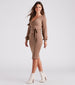 Wrap yourself up in style this season! Cue compliments whenever you're in this cable knit sweater midi dress featuring long balloon sleeves, a v-neckline, and a surplice bodice with a tie-front waist belt and a bodycon silhouette. Style with pointed-toe booties to complete the look!